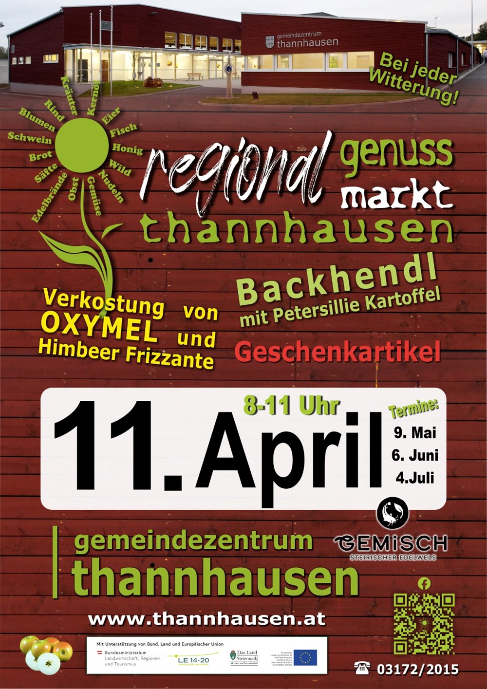 findet der nächste Regional Genussmarkt Thannhausen statt - ausnahmsweise am zweiten Samstag im April.